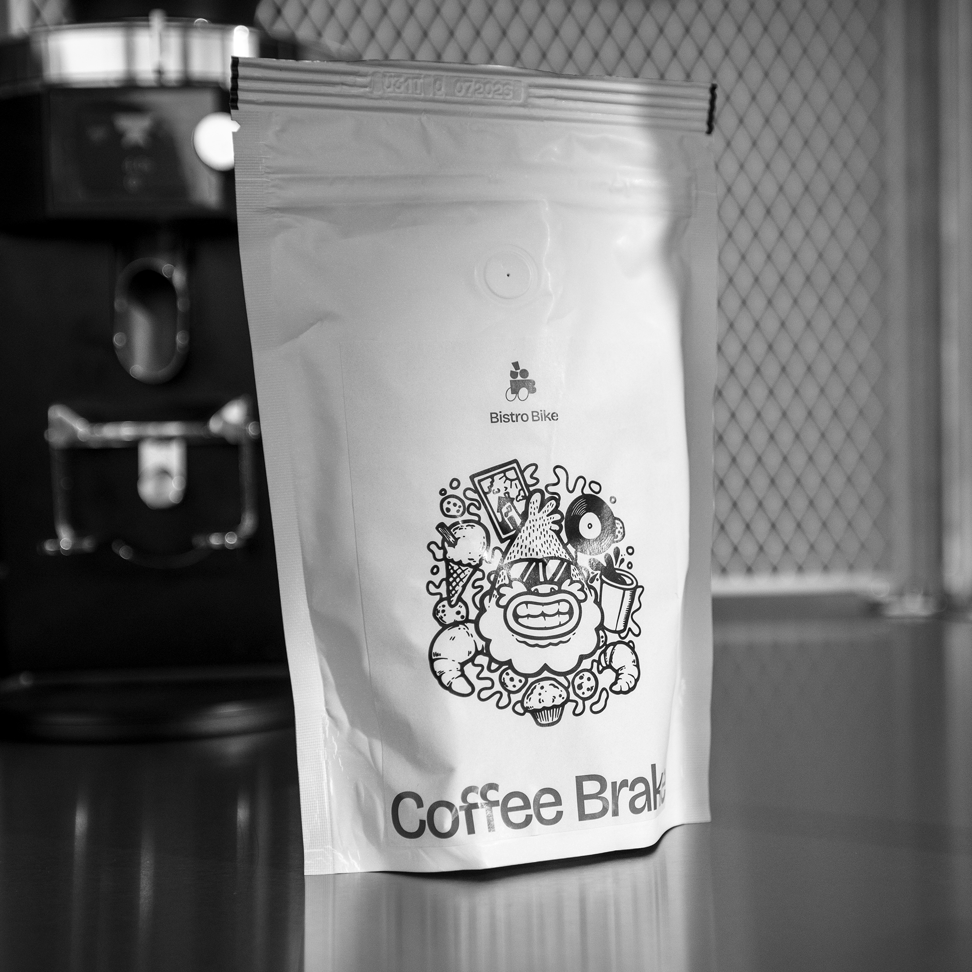 Bistro Bike Coffee Brake is a blend of dark roasted whole espresso beans consisting of 80% Arabica from South America and 20% Robusta from India. Roasted and packed in Italy. Notes of cacao, vanilla, and caramel.